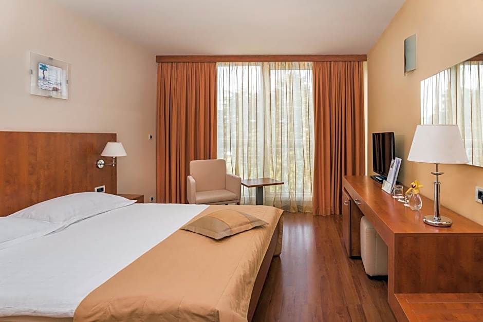 This double sea side room has a satellite TV and a bathroom with a tub.