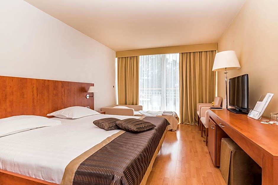 Very spacious junior suite with a furnished balcony and a view. The junior suite comes with a separate lounge area and a bathroom with bath and free toiletries.